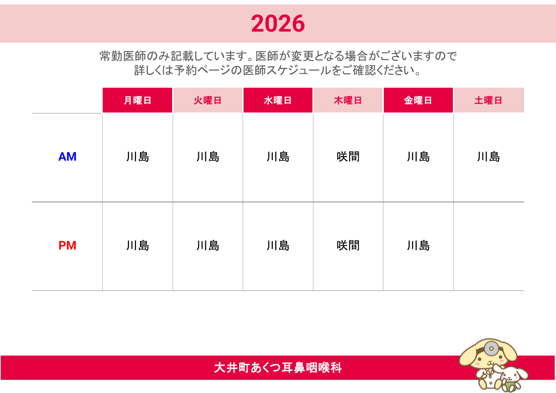 【大井町】常勤医師カレンダー