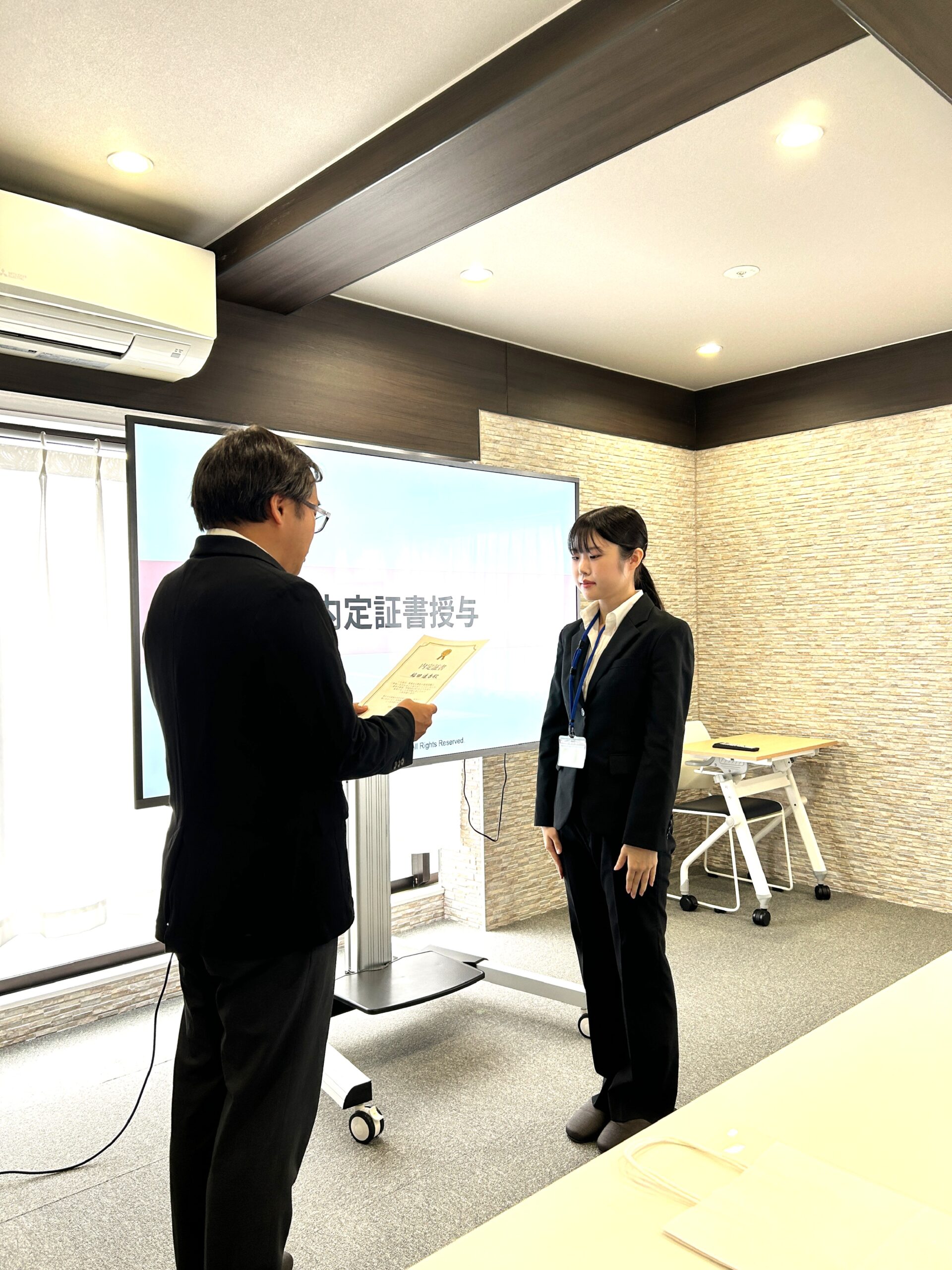 最初に理事長より、内定証書の授与を行いました。